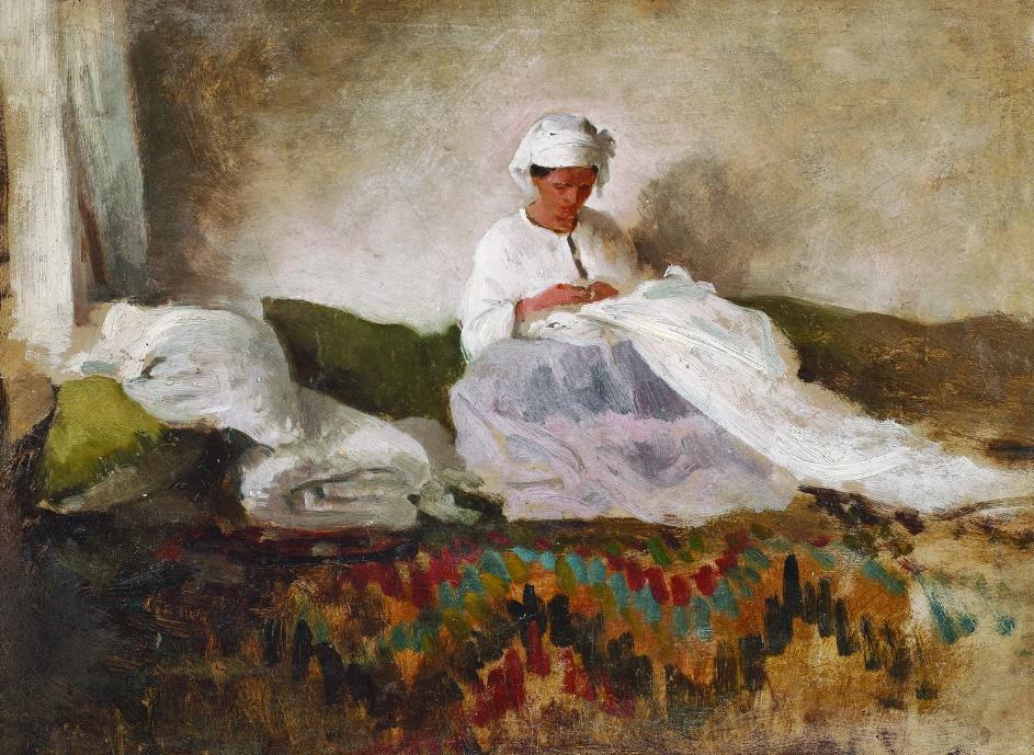 2. Interioarele de la Vitré (1876; c. 1881 – 1885), în care rolul principal îl joacă lumina solară ce irupe de afară; construcția formei, prin tușe vii și sintetice, servește expresivitatea elementelor definitorii pentru personajul feminin (Bretonă lucrând / La fereastră, MNAR/GARM inv. 67721/7015). Lucrarea de față, databilă 1870, face trecerea către ciclul interioarelor de la Vitré.