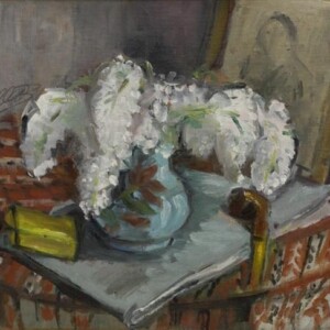Several works entitled Apple Flowers, Blooming Apple Tree, Hollyhock Flowers, Eglantine were included in Grigorescu’s personal exhibitions opened in 1895 – 1904. They belong to the theme of the white period. After the death of the artist, many of these remained in the workshop of his house in Câmpina, some of them being acquired by purchase in 1910 at the State Pinacotheca, while others remained for a while in the family’s possession. We can remind as variations of our painting the undated floral boards from MNAR, Apple Flowers, (53 x 24 cm; inv. 69689/7629), Branch with apple flowers (45 x 16.8 cm; inv. 104178/10570), etc.