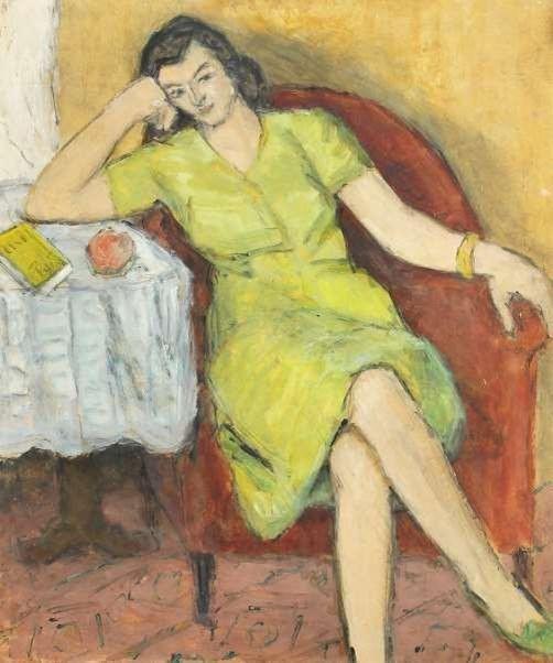 În rochie vernil pe fotoliu roșu – Theodor Pallady